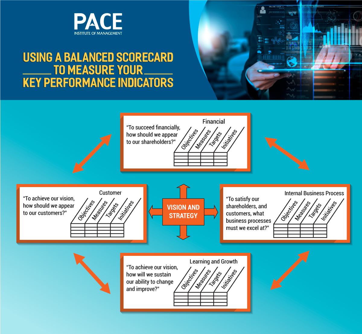 The idea is that these four perspectives are interdependent and hierarchical; growth is driven by constant learning and innovation, which leads to the refinement of internal processes. The improvement in internal processes through the KPI balanced scorecard, then help to drive increases in operating efficiency which result in higher customer satisfaction and increased financial performance. Using this insight, this model has been refined into the concept of the balanced scorecard, described by Robert Kaplan and David Norton. While interpretation of the balanced scorecard varies depending on the source, the basic idea of linking strategy to operational tactics remains sound, and a solid framework to map any company’s progress toward success.