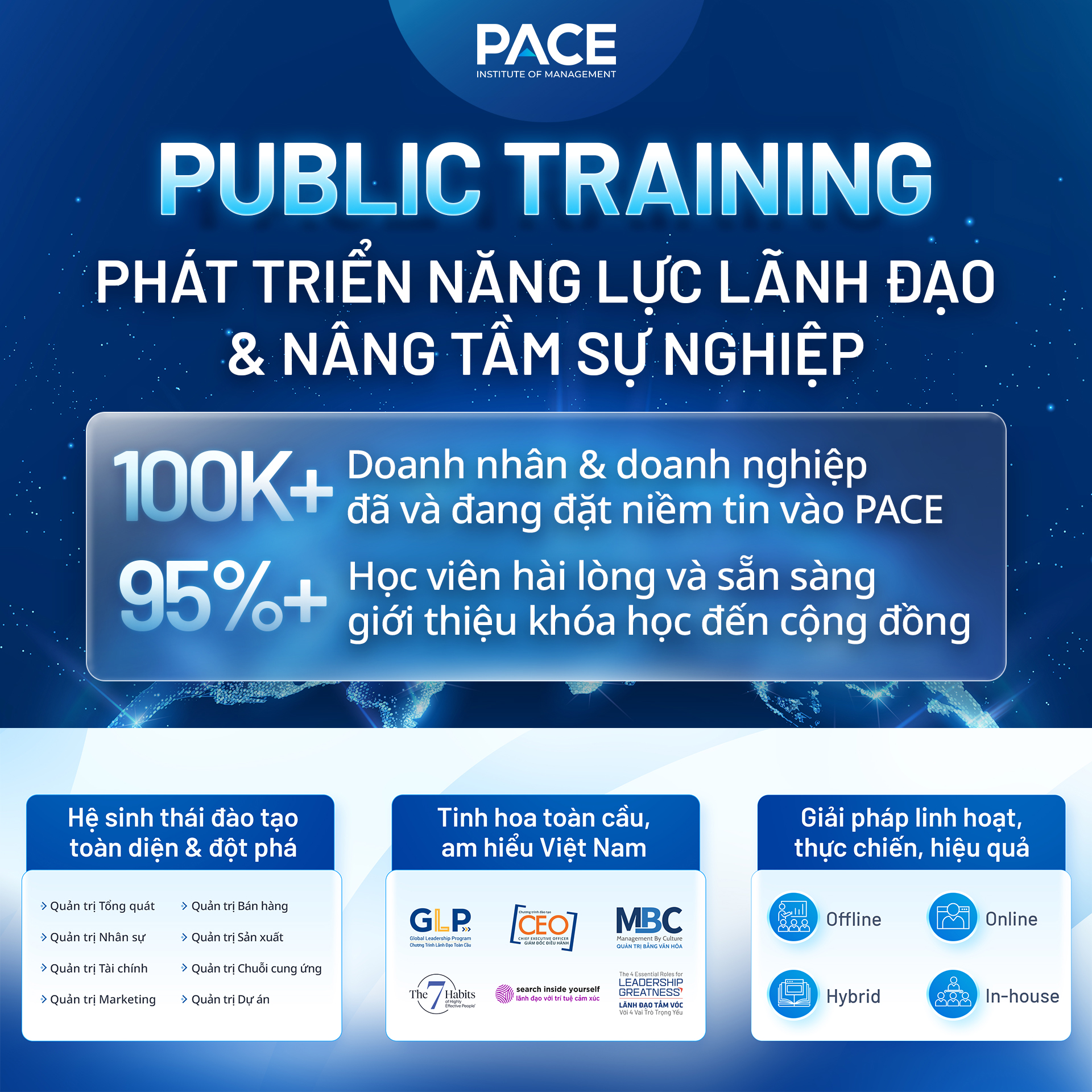 Không chỉ là đào tạo kỹ năng, PACE mang đến giải pháp nâng cao năng lực lãnh đạo, mở rộng tư duy quản trị và kiến tạo giá trị bền vững cho cá nhân và tổ chức.