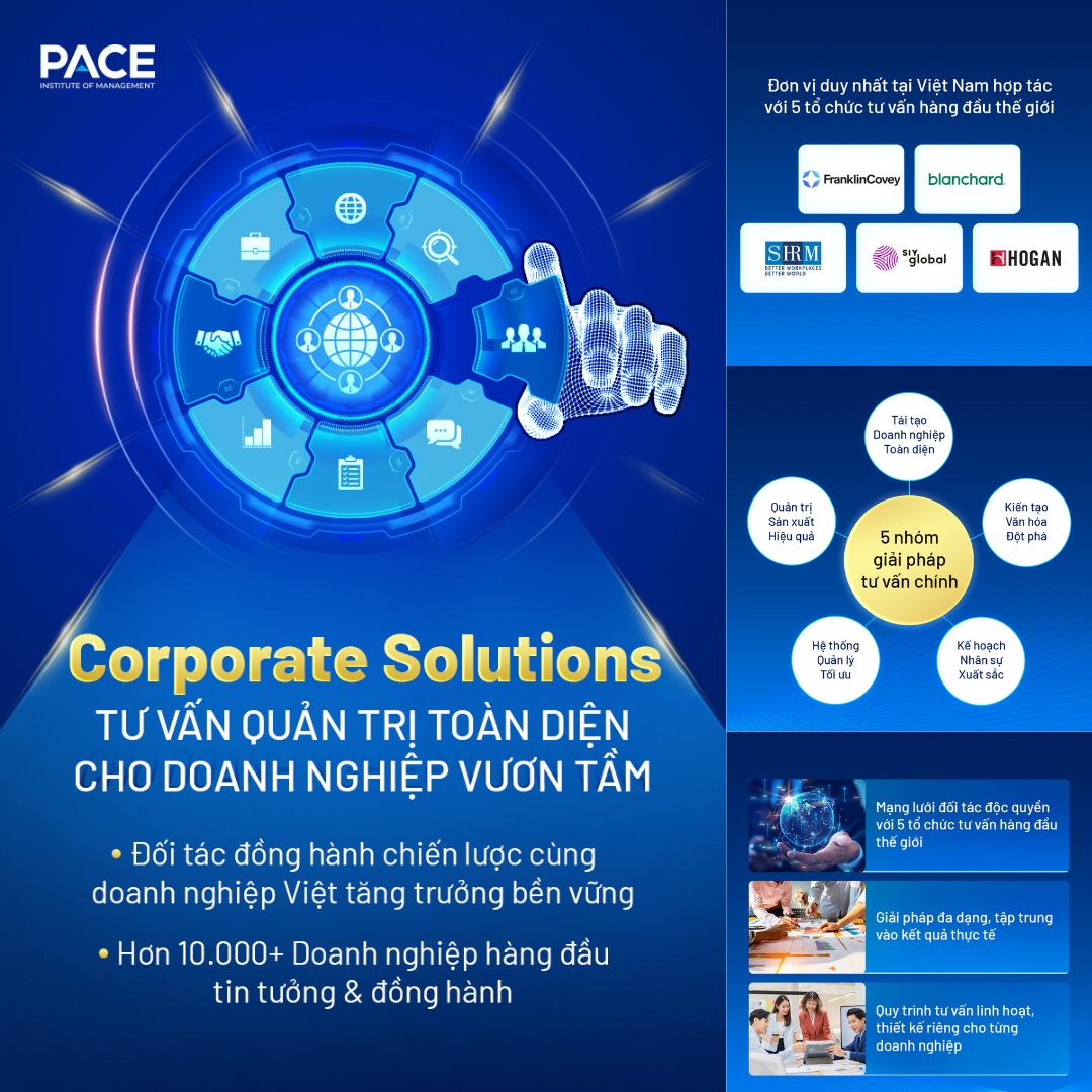 PACE Consulting là đơn vị tư vấn chuyên sâu của Học viện Quản lý PACE, đồng hành cùng doanh nghiệp trong hành trình tái tạo, tối ưu và phát triển bền vững.