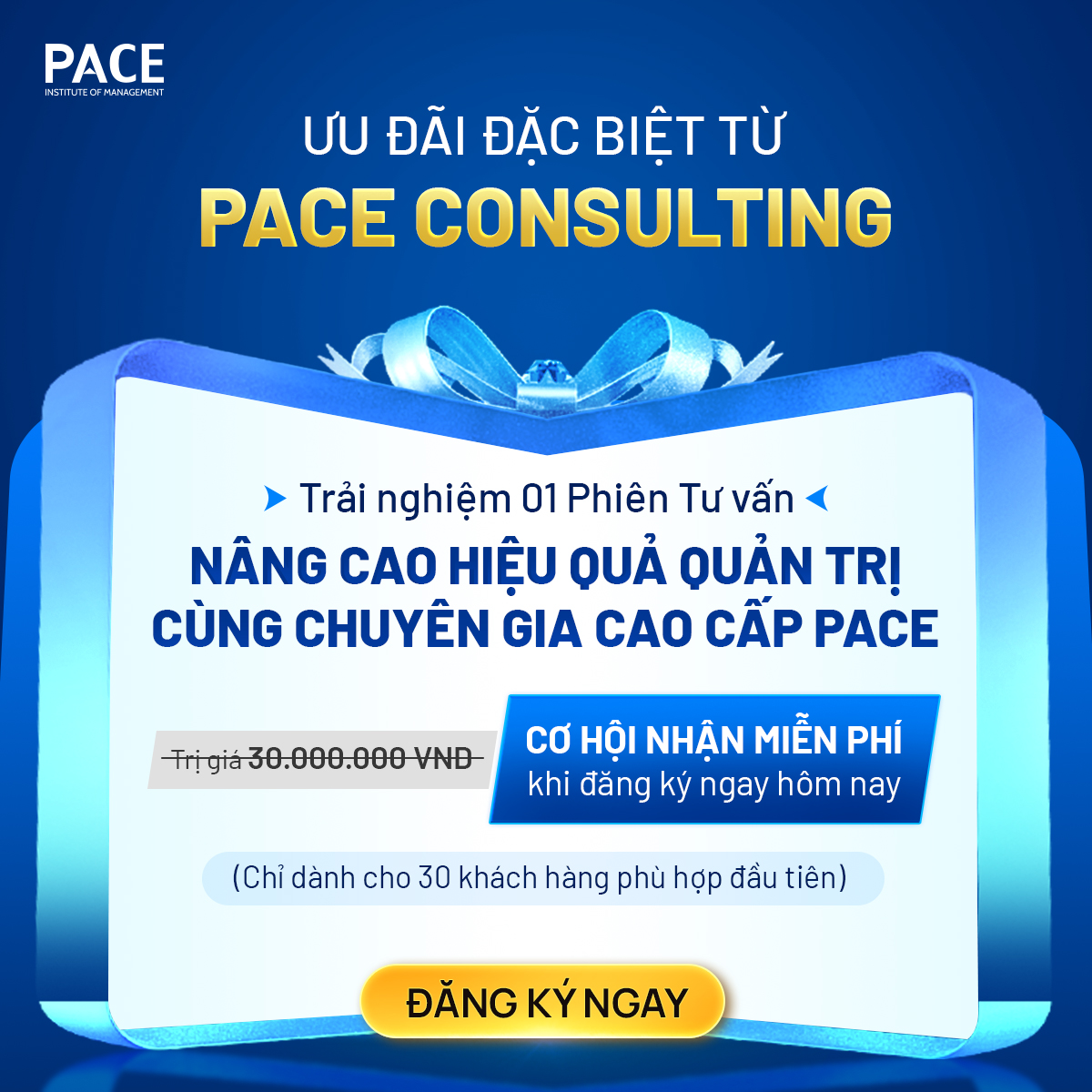 Nhằm đồng hành cùng doanh nghiệp đánh giá và tối ưu quản trị kịp thời cho giai đoạn bứt phá tiếp theo, PACE Consulting triển khai 02 ưu đãi chiến lược: